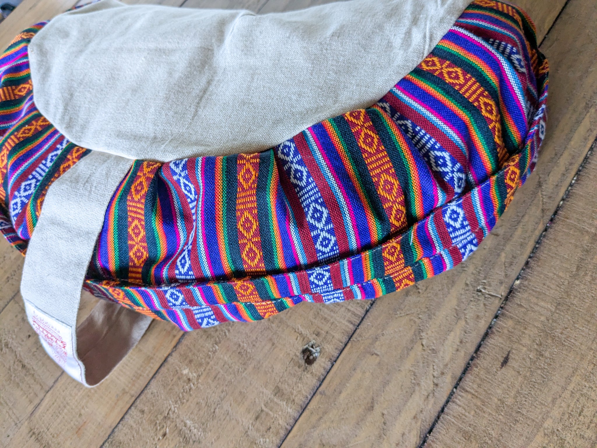 The moon-shaped design offers ergonomic support to promote a calm, stable posture. Each cover is crafted with care using authentic Bhutanese-patterned fabric, adding a vibrant touch of Himalayan cultural heritage to your space.